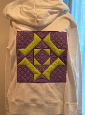 Part 2: Embellish a Jacket Give your wardrobe a custom upgrade. We’ll show you how to add a stunning quilt block to a zippered hoodie or jean jacket. Note: Please bring your own jacket and 2 contrasting fat quarters!